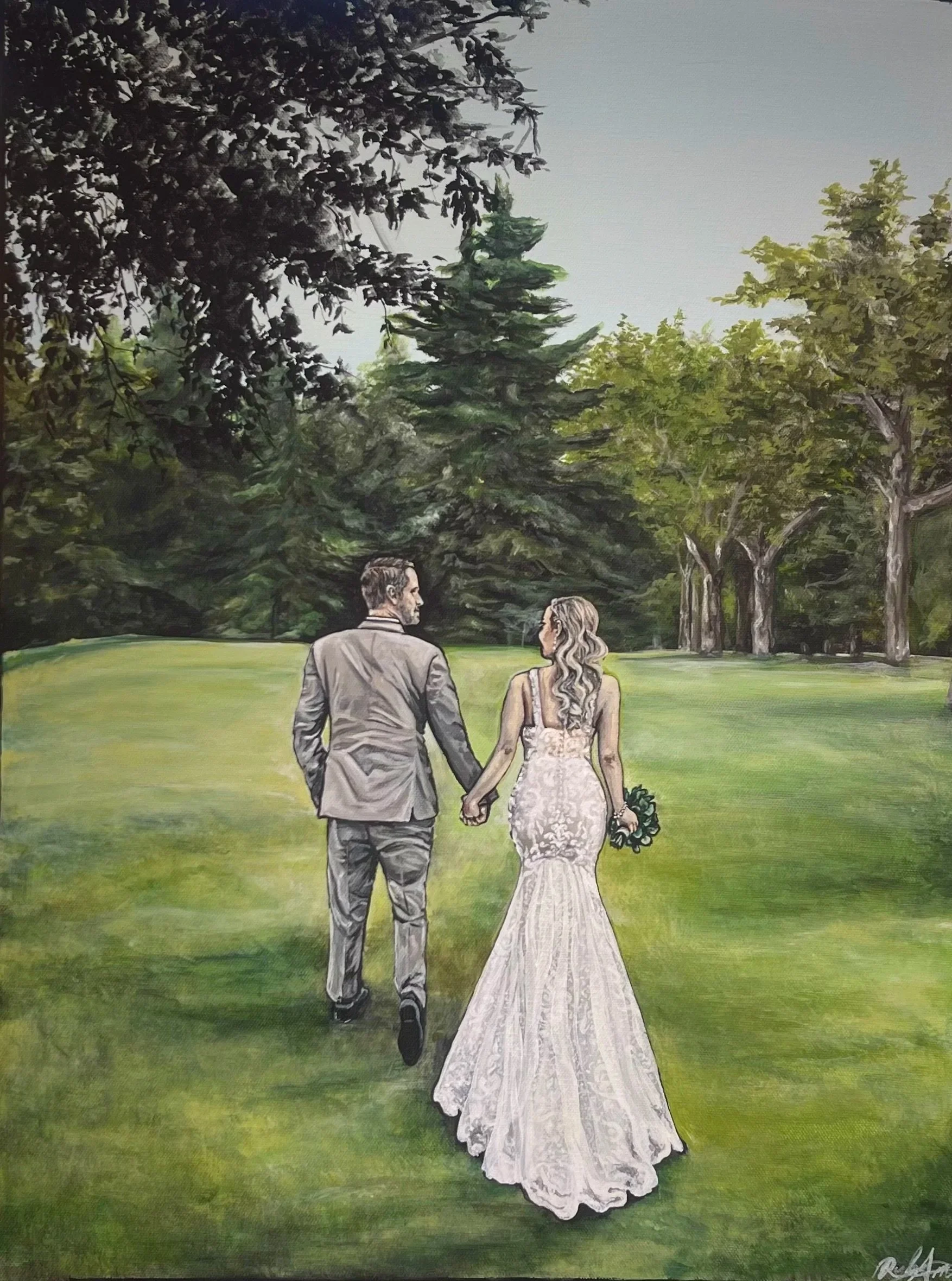 After the wedding, the painting is carefully refined in studio and delivered within 30 days as a finished heirloom artwork.